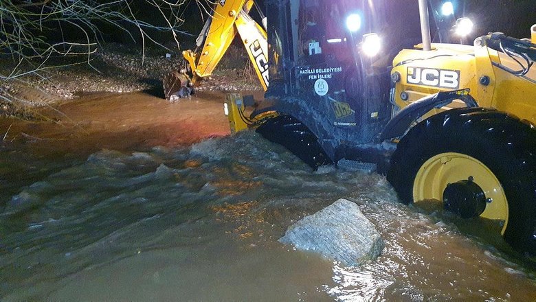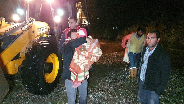 Aydın’ın Nazilli ilçesinde sağanak yağış sonrası Akçay Nehri’ne akan derenin taşması sonucu kaldıkları çadırda hayvanları ile mahsur kalan biri çocuk dört kişi bölgeye gelen ekipler tarafından kurtarıldı.