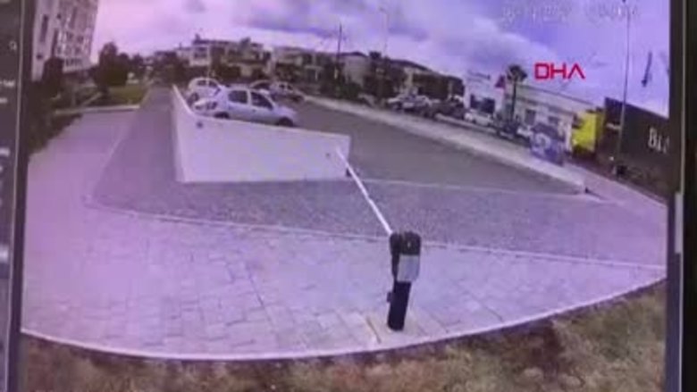 Muğla'nın Bodrum ilçesinde, seyir halindeki TIR'ın dorsesi, telefon kablolarına takıldı. İki telefon direği kırılırken, trafik levhası yıkıldı, 2 otomobil hasar gördü. O anlar bir iş yerinin güvenlik kamerası tarafından saniye saniye görüntülendi.