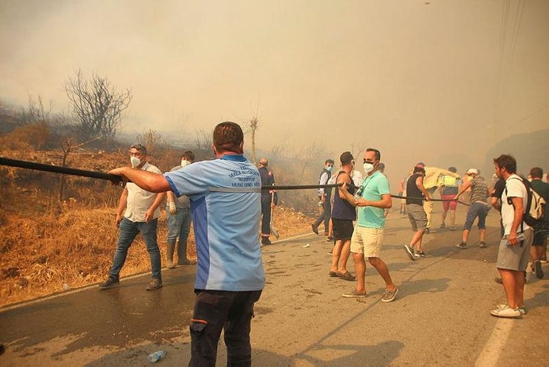Yangına Orman ve itfaiye ekipleri ile Polis ve Jandarma TOMA'ları su sıkarken, beton mikserleri ve köylüler bölgeye su taşıyor. Adeta herkesin seferber olduğu söndürme çalışmalarında bazı vatandaşlar yangını söndürmek için çaba harcarken bazı vatandaşlar ise soğuk su meşrubat ve çeşitli içeceklerle söndürme işçilerinin hararetini söndürmeye çalıştı. Bölgede çalışmalar tüm hızıyla devam ediyor.