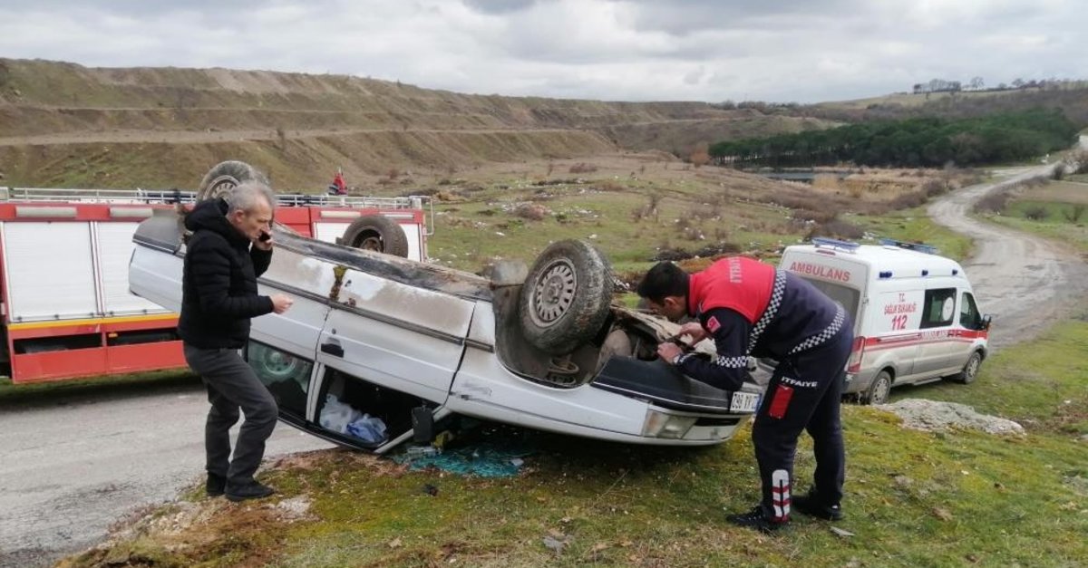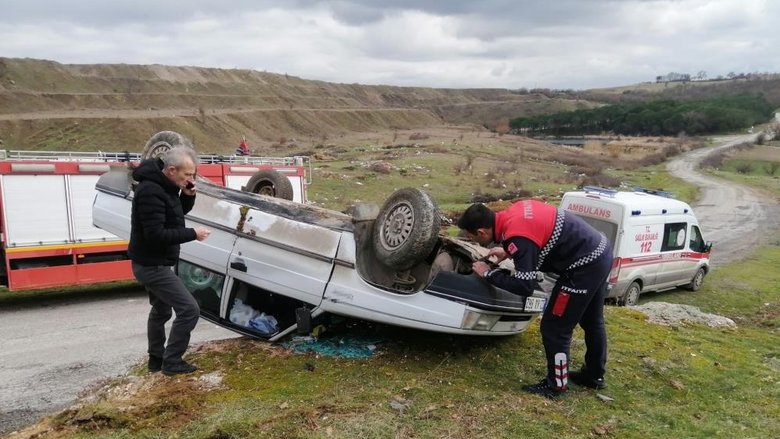 Çanakkale’nin Çan ilçesine bağlı İlyasağa Çiftliği köyü yakınlarında meydana gelen trafik kazası görenleri şaşkına çevirdi. Otomobil 2 metre yüksekiliğindeki kayanın üzerinde ters döndü, sürücü ise içeride sıkıştı.