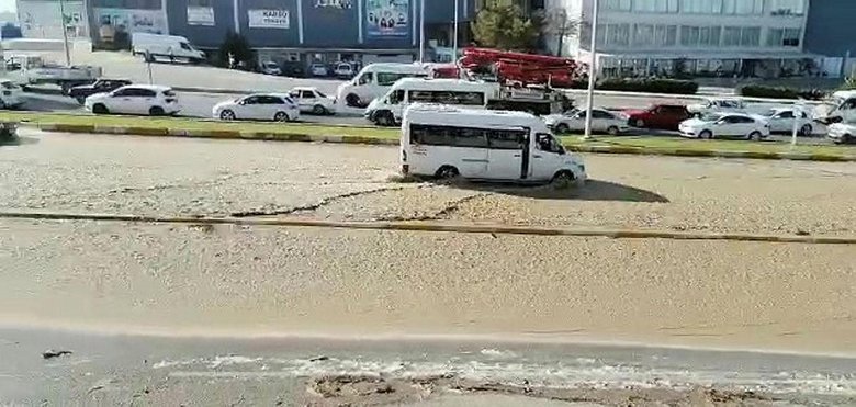 Taşan sular nedeniyle Ankara Bulvarı dereye dönüştü. Bulvara çok fazla suyun akması nedeniyle araçlar su içerisinde ilerlemekte zorluk çekti.