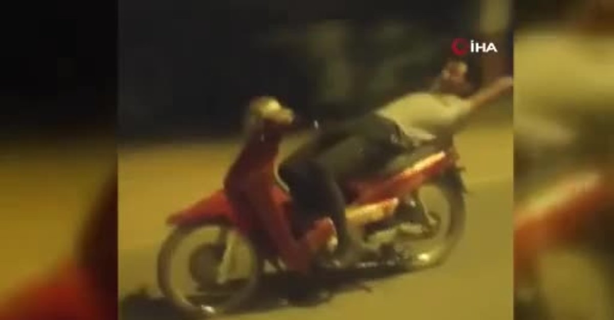 Denizli’in Çivril ilçesinde 100 kilometre hızla ilerleyen motosikletin üzerinde ellerini bırakıp yatarak giden trafik magandası, anayolda hem kendi hem de diğer sürücülerin canını hiçe saydı. İşte o görüntüler…