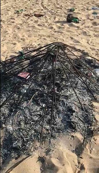 Pazar sabahı Sulubahçe'ye giden Bozcaada Spor Kulübü Yönetim Kurulu üyesi Ümit Kahyaoğlu, yanmış şemsiyeyi, kırılmış şezlongları ve çöpleri görünce tepki gösterdi. Kahyaoğlu, jandarmaya giderek, şikayetçi oldu.