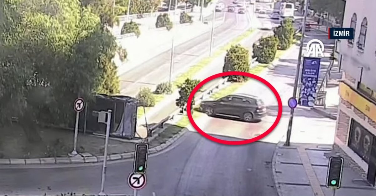 İzmir'in Konak ilçesinde alt geçide düşen otomobilde bulunan 3 kişi öldü, ağır yaralanan 2 kişi hastaneye kaldırıldı. Otomobil düşme anına ilişkin görüntüler ortaya çıktı.
