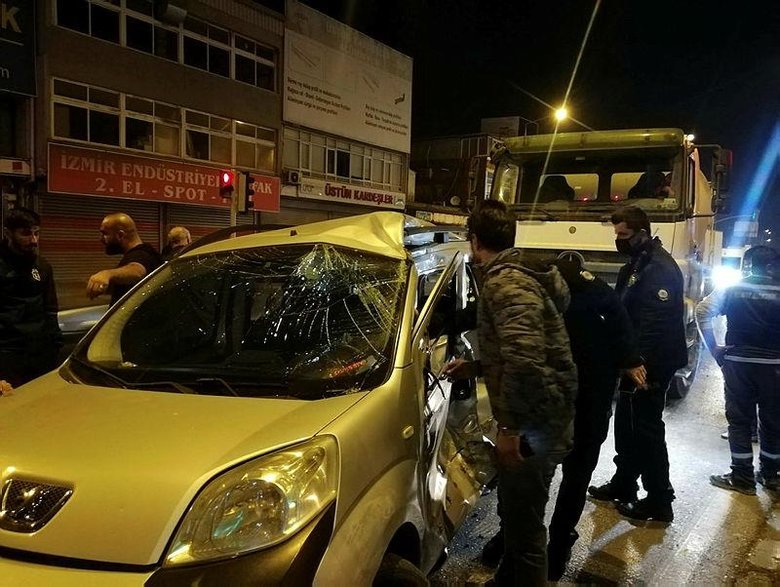 Kaza, saat 22.15 sıralarında Yeşillik Caddesi Gediz Kavşağı'nda meydana geldi. İddiaya göre, Karabağlar istikametinden Gaziemir yönüne gitmekte olan ve kırmızı ışık ihlali yaptığı ileri sürülen Selahattin U. (27) idaresindeki Mercedes marka 33 AGY 908 plakalı beton mikseri, Yeşillik Caddesi yan yoldan Konak istikametine dönmek isteyen İsmail O., yönetimindeki 35 TBA 69 plakalı Peugeot marka hafif ticari araca çarptı.