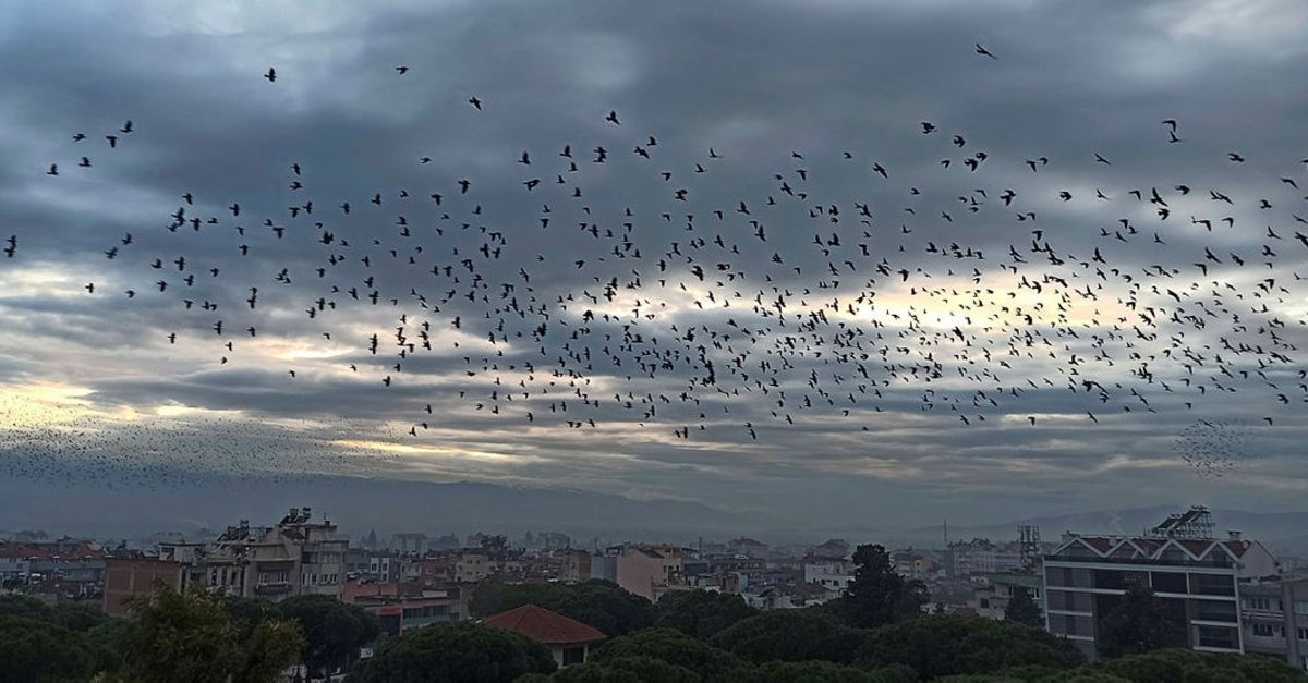 İzmir'de binlerce sığırcık kuşundan görsel şov! İşte o anlar...