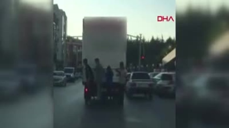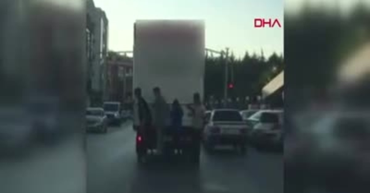 İzmir'de, sabah saatlerinde, dört genç, hareket halindeki kamyonetin arkasına tutunup, paten sürerek yolculuk yaptı. Çocuklardan biri dengesini kaybederken, yanındaki iki arkadaşının yardımıyla yeniden hareket eden kamyonete tutundu. O anlar, başka bir sürücü tarafından cep telefonu kamerasına kaydedildi. Görüntülerde, çocuklardan birinin kamyonet kırmızı ışıkta durduktan sonra ellerini bıraktığı, kamyonet hareket ettikten sonra arkadaşlarının yardımıyla yeniden kamyonete tutunduğu görülüyor. Sosyal medyada paylaşılan görüntü ise kullanıcılar tarafından tepki topladı.