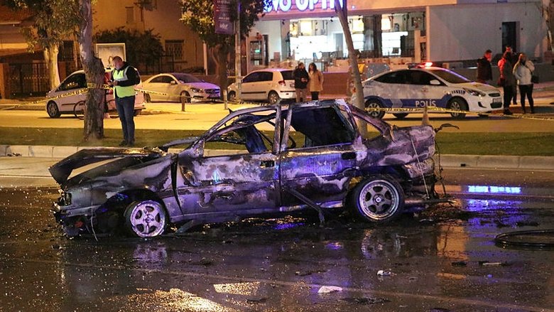 İzmir'in Balçova ilçesinde takla atıp alev alan otomobildeki 2 kişi öldü, 1 kişi yaralandı.