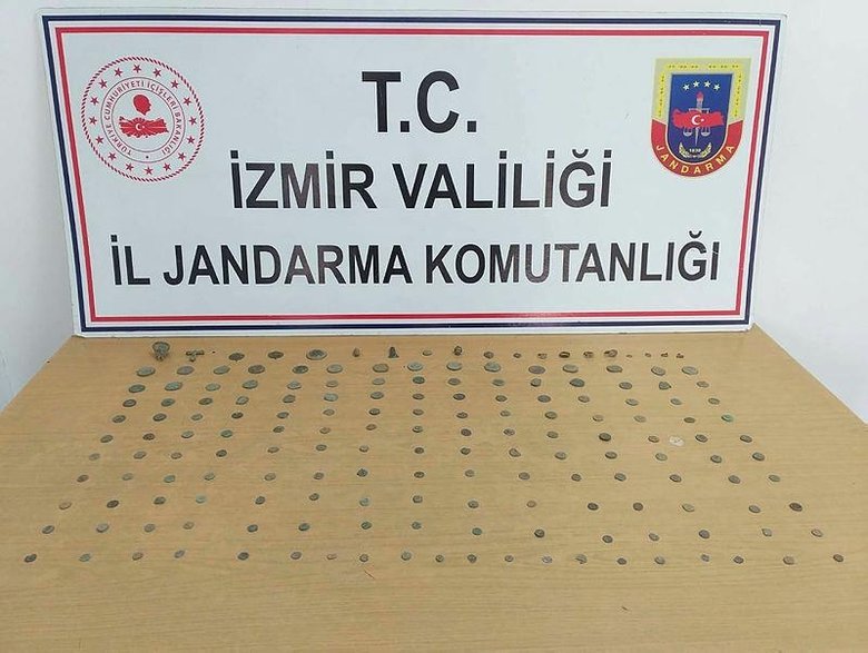 Araç içerisinde yapılan aramada, Osmanlı, Roma ve Bizans dönemine ait olduğu değerlendirilen 154 adet sikke, 19 adet küpe, kolye ucu ve yüzük olmak üzere toplam 173 parça tarihi eser ele geçirildi. Ele geçirilen tarihi eserler Tire Müze Müdürlüğüne teslim edilirken, ekipler tarafından 2 şüpheli hakkında adli işlem başlatıldı.