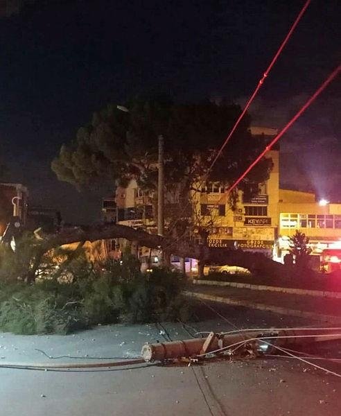 Kentte dün gün boyu etkili olan rüzgar, gece saatlerinde şiddetini arttırdı. Kuvvetli rüzgar nedeniyle kent genelinde çok sayıda ağaç devrildi. Bornova'da Mustafa Kemal Caddesi'ndeki refüjde bulunan 6 ağaç da kuvvetli rüzgarda kökünden söküldü. İhbar üzerine olay yerine belediye ve polis ekipleri sevk edildi. Yolu trafiğe kapatan ekipler, ağaçları keserek kaldırıldı. Çalışmalar sonrası yol trafiğe açıldı.