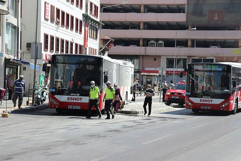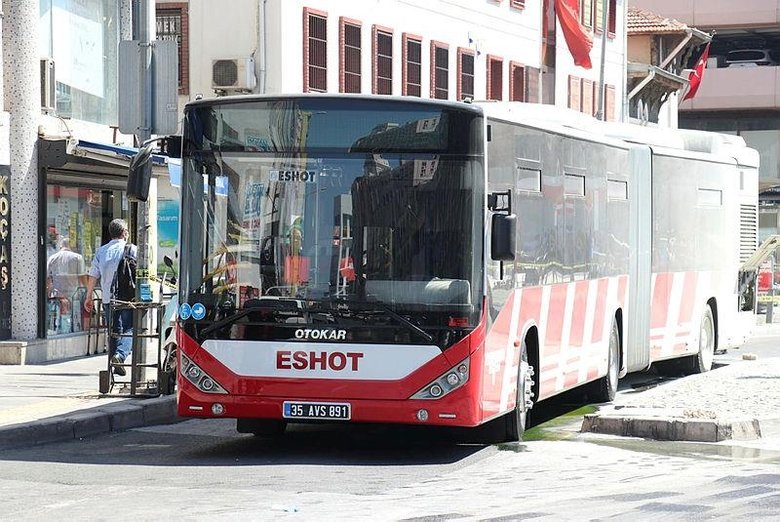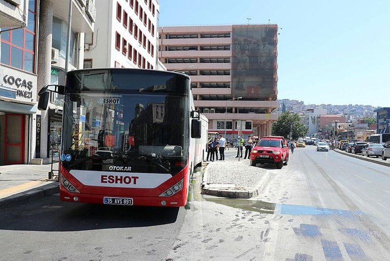 İzmir'in Konak ilçesinde bir belediye otobüsünde çıkan yangın sürücünün çabasıyla söndürüldü.
