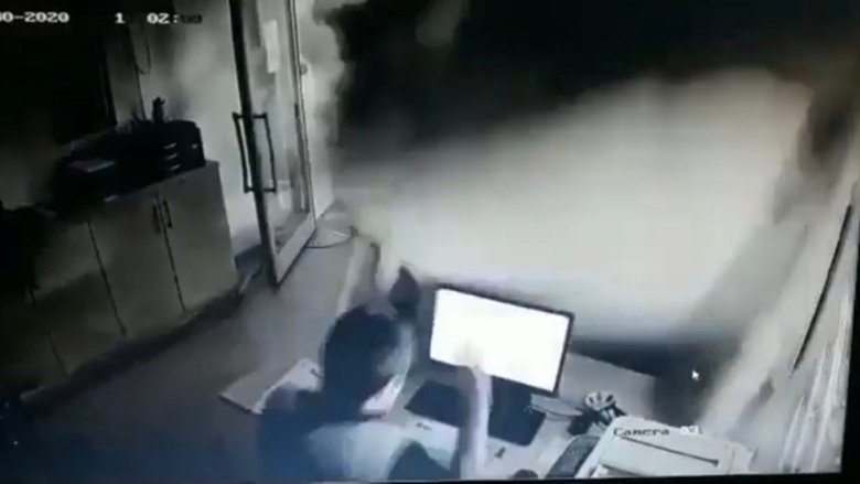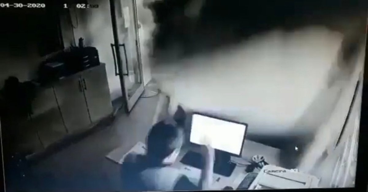 Yaşanan olay ise iş yerinin güvenlik kamerasına saniye saniye yansıdı. Görüntülerde, alt katta bir kişi bilgisayar başında çalıştığı sırada, bir anda tavan üzerine çöküyor. İş yerindeki kişi şans eseri olaydan yara almadan kurtulurken, olay yerinden kaçmaya çalıştığı anlar saniye saniye görüntüleniyor.