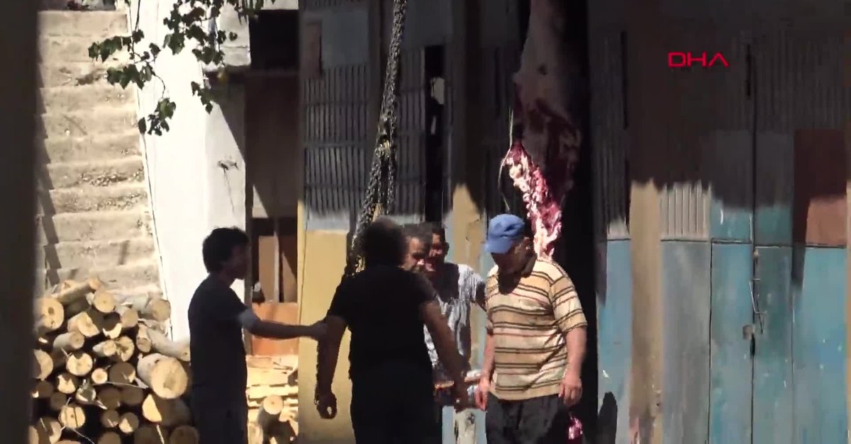 O anlar kameralara yansıdı. Görüntülerde kurbanlıkların sokakta ve yeşillik alanlarda kesilip derisinin yüzüldüğü görüldü.