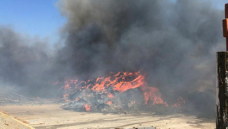 İzmir'in Kemalpaşa ilçesinde geri dönüşüm tesisine ait plastik atıkların depolandığı alanda çıkan yangına müdahale ediliyor.