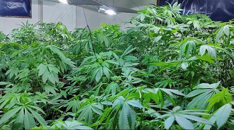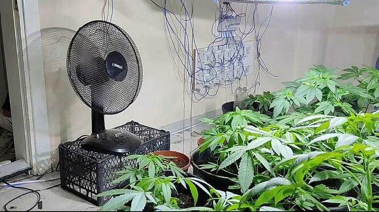Bir eve yapılan baskında, özel ışıklandırma sistemiyle fotoğraf stüdyosuna benzer bir ortamda saksıların içinde Hint keneviri yetiştirildiği belirlendi.