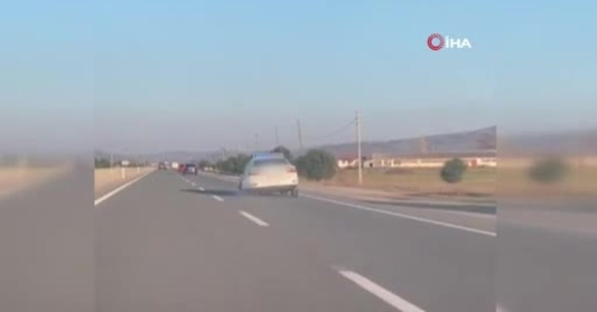 Yeniasır TVYaşam Kazaya davetiye çıkaran görüntü! Parçalanmış lastikleri ve yerdeki tampon ile yoluna devam etti