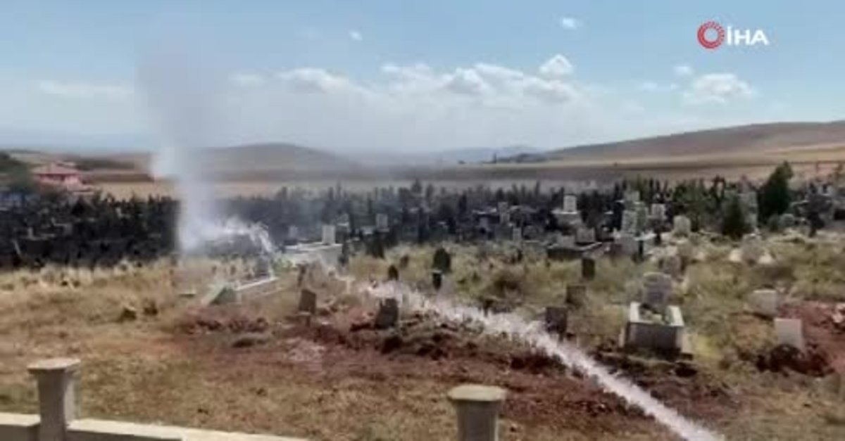 Afyonkarahisar’daki mezarlık alan bir anda alev aldı. Çocuklar tarafından yakıldığı iddia edilen mezarlıktaki yangın itfaiye ekiplerinin müdahalesiyle söndürüldü.