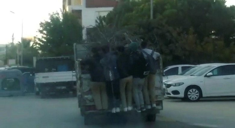 Son dakika edinilen bilgiye göre, okuldan çıkan bir grup liseli öğrencinin bir hurda kamyonetinin arkasına tutunup tehlikeli bir şekilde ilerlemesi cep telefonu kamerasına yansıdı. Görüntülerde kamyonetin kasa kısmına tutunup ilerleyen öğrenciler net bir şekilde görülüyor. Gençlerin ölümüne yolculuğu izleyenlerin yüreklerini ağızlara getirirken, 'bu kadar da olmaz' dedirtti.