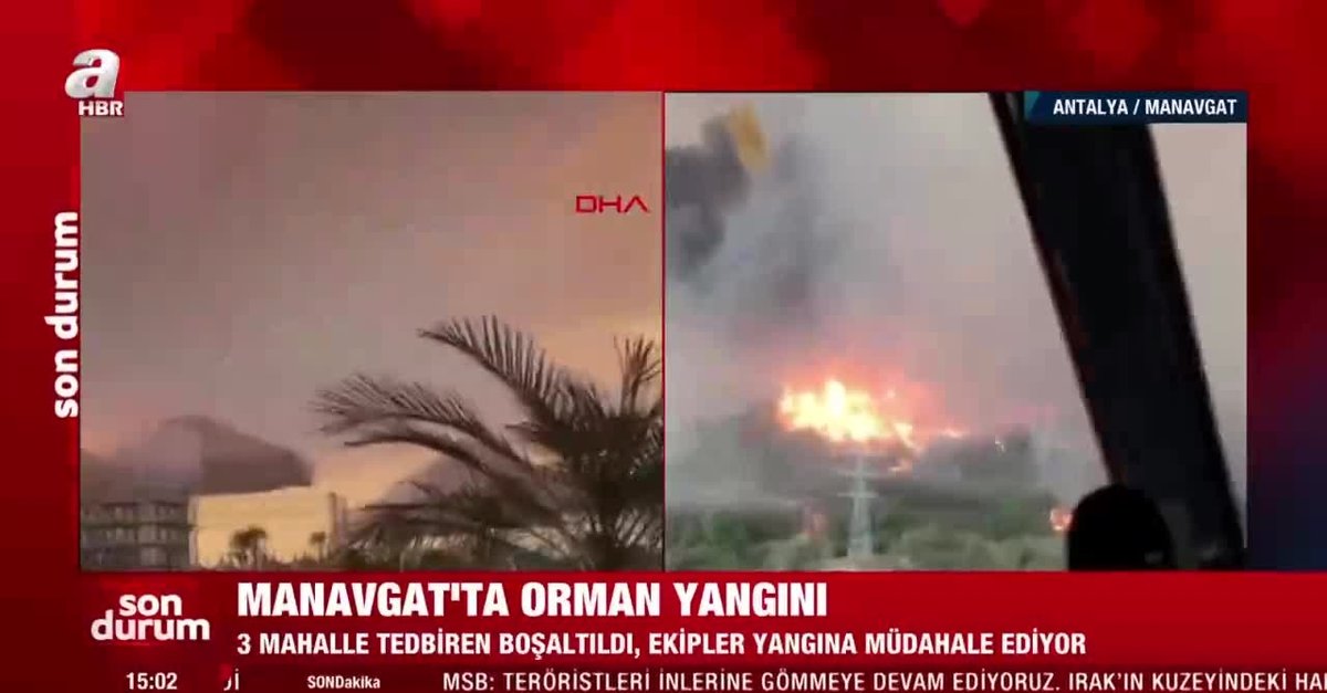 Son dakika haberi...Antalya'nın Manavgat ilçesinde saat 12.00 sıralarında 4 ayrı noktada başlayan orman yangını rüzgarın da etkisiyle hızla büyürken, ekipler yangını söndürmek için büyük çaba harcıyor. Manavgat Kaymakamı Mustafa Yiğit, AA muhabirine, "Yangın yerleşim yerlerine doğru ilerliyor. Yangın nedeniyle Evrenseki, Kalemler ve Yeniköy mahallelerindeki bazı evler boşaltıldı." dedi.