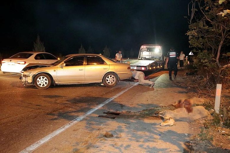Koyunlara çarpan Kaplan'ın otomobiline ise arkasından gelen Hayrettin Yeşilkurt (46) yönetimindeki 64 ABC 035 plakalı otomobil çarptı.