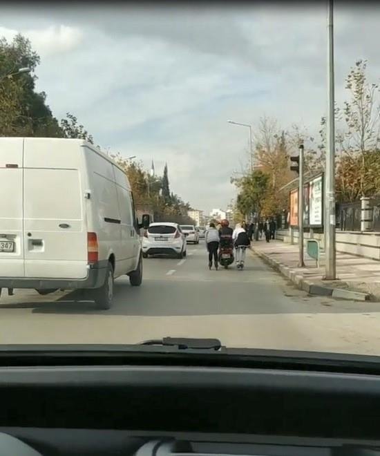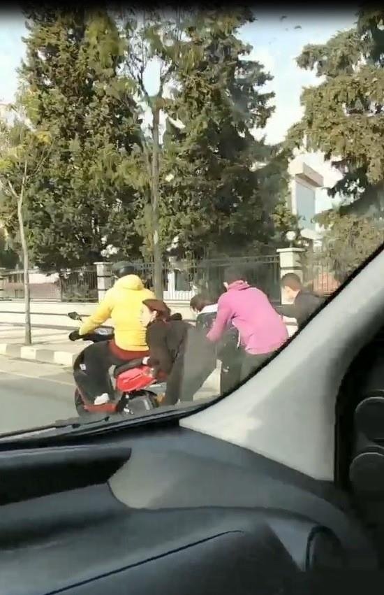 Gençler hem kendi canlarını hem de trafiği tehlikeye düşürdü. O anlar bir araç içinden cep telefonuyla kaydedilirken gençlerin rahat tavırları ve birbirlerine tutunarak yoğun trafik içinde ölümüne yolculukları görenlere pes dedirtti.