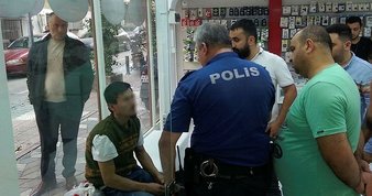 Manisa’da oyun salonunda 11 yaşındaki erkek çocuğu taciz ettiği iddia edilen yabancı uyruklu şahıs, esnaf ve çevredeki vatandaşlar tarafından darp edildikten sonra polise teslim edildi. İşte o anlar güvenlik kamerasına böyle yansıdı...