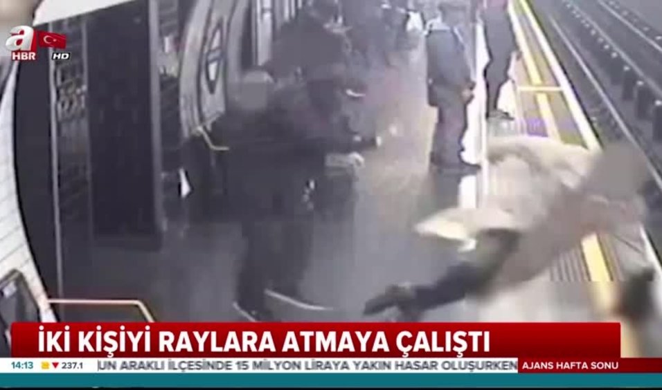 İngiltere'de metro istasyonunda bir saldırgan, iki kişiyi raylara atmaya çalıştı. Saldırganın ittiği 91 yaşındaki yaşlı bir adam raylara düşerek yaralandı. O anlar kaydedildi.