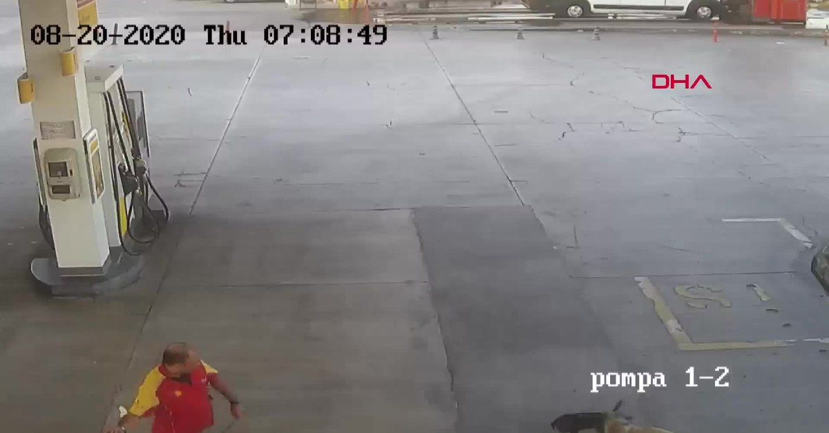 O anlar akaryakıt istasyonunun güvenlik kameralarınca saniye saniye görüntülendi. Minibüs şoförünün ise olayın ardından kendisini durdurmak isteyen akaryakıt istasyonu çalışanları ile tartışıp, hızla uzaklaştığı ileri sürüldü.