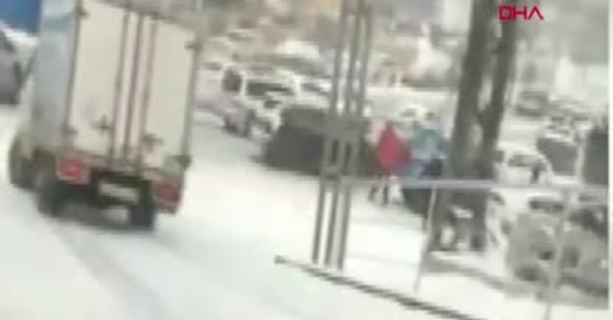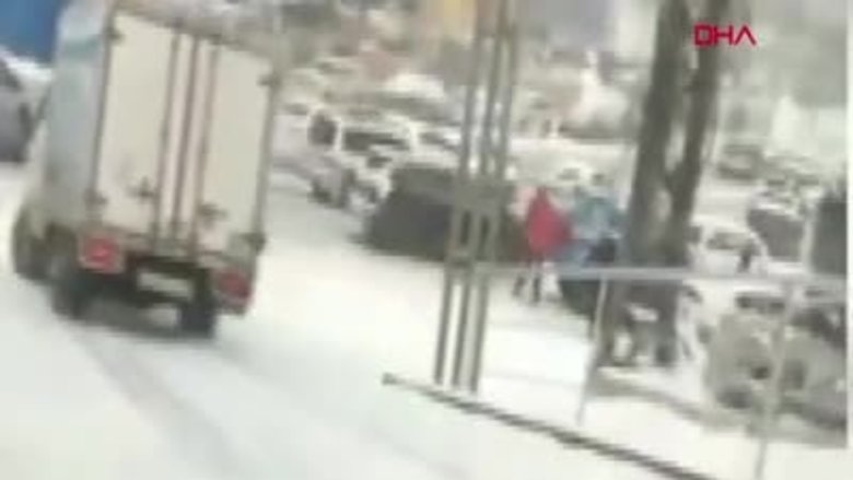 Rusya'da karşıdan karşıya geçmek isterken ayağı kayan kadını kamyon altında kalmaktan son anda kurtardı. Kadının mucize kurtuluşu saniye saniye kameralara yansıdı.