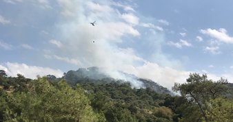 Rüzgarın etkisiyle yayılan yangına havadan ve karadan müdahale ediliyor. Bölge sakinleri de kovalarla su dökerek alevleri söndürmeye çalışıyor. Yangınla ilgili son dakika gelişmeleri a haber ekranlarından bildirildi. Muğla Bodrum'da orman yangıını