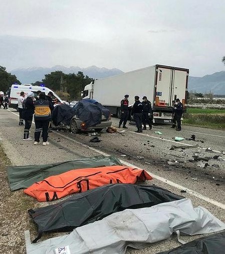 Muğla'nın Seydikemer ilçesinde tırla otomobilin çarpışması sonucu 5 kişi hayatını kaybetti.