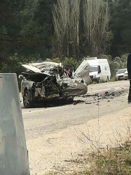 Kazada, otomobildeki 5 kişi yaşamını yitirdi. Cesetler, itfaiye ekipleri tarafından araçtan çıkarıldı.