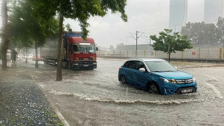 İzmir'de etkili olan sağanak nedeniyle cadde ve sokaklarda su birikintileri oluştu, sürücüler zor anlar yaşadı.