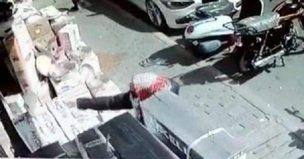 Mağazanın önüne gelen bir kadın, bu sırada dışarıda duran ve piyasa değeri yaklaşık bin 500 lira olan koli içindeki televizyonlardan birini alarak kaçtı.