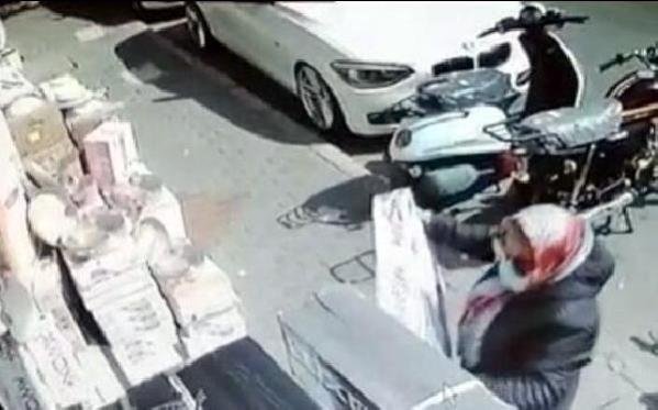 Hırsızlık olayı, pazartesi günü saat 12.00 sıralarında Bahar Mahallesi Eski İzmir Caddesi'nde bulunan bir beyaz eşya mağazasının önünde gerçekleşti.