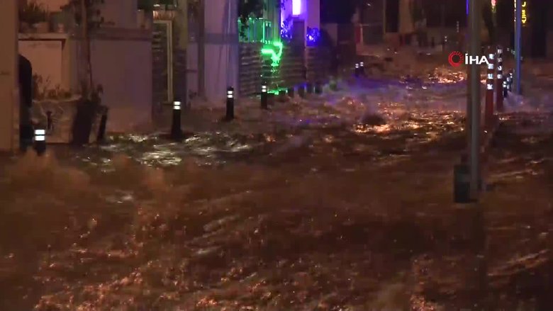 Bodrum'da şiddetli yağmur sokakları göle çevirdi
