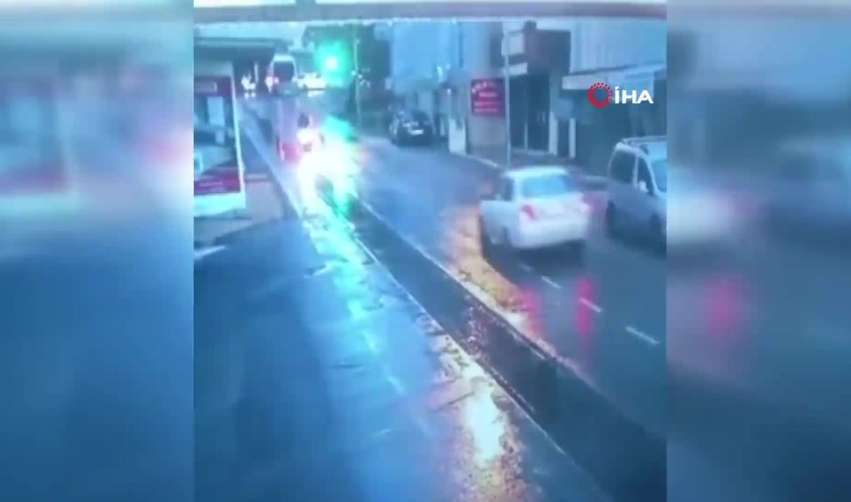 İzmir'de, otomobilin motosiklete çarptığı anlar kameralara yansırken, motorun arkasındaki yolcu, kazayı unuttu ve sinirden araç sürücüsünün aracını tekmeledi. Camı kapalı olan sürücüsü ise motosiklet üzerindeki kişilerin sinirli olduğunu görünce aracından aşağıya inmedi. İki kişi, kazayı hafif sıyrıklarla atlatırken, sürücünün aşağıya inmemesi olası bir facianın da önüne geçiyor.