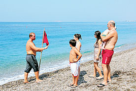 Deniz kirliliğiyle mücadele etmeye çalışan Özdereliler, bir araya geldi ve Portekiz'deki sahil temizlik modelini kendi sahillerinde uygulamaya başladı. Yeşil ve kırmızı bayraklarla gün boyu sahilde bulunan bir gönüllü, kirliliği fark ettiğinde kırmızı bayrakla halkı uyarıyor. Deniz temizken yeşil bayrak sallayarak izin veriyor. Menderes ilçesine bağlı Özdere beldesinde yaklaşık iki yıldır denizde yaşanan kirlilik halkı isyan ettirdi. Çalmadık kapı bırakmadıklarını ifade eden bir grup Özderede sakini, buldukları bir yöntemle denizdeki kirlilikten korunma yolunu seçti. Portekiz sahillerinde uygulanan uyarı sistemini örnek alan vatandaşlar, "Kırmızı ve yeşil bayrakla sağlığımızı korumaya çalışıyoruz" dedi.