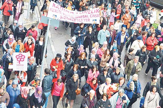 İzmir'de kadınlar hakları için meydanlara çıktı, Atatürk'e çiçekler sunan kadınlar, Kültürpark'a kadar yürüdü ve şiddeti protesto etti. İzmir Kadın Kuruluşları Birliği Başkanı Emel Denizaslanı, zihniyet devrimine ihtiyaç olduğunu söyledi.
