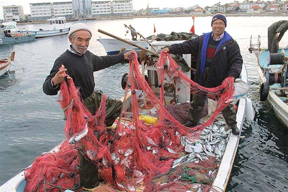 İzmir'in Karaburun ilçesinde yabancı bandıralı bir tankerin çarptığı balık çiftliğinden kaçan 1 milyonu aşkın çipura ve levrek, komşu Mordoğan ilçesinde balıkçıların ağlarını doldurdu.