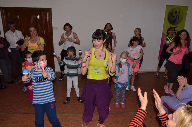Zumba Kids etkinliği çocuk hastanesinin eğitim salonunda, başta onkoloji kliniği hastaları olmak üzere çocuk hastaların, hasta yakınlarının, hastane yöneticileri ve sağlık çalışanlarının yoğun ilgi ve katılımı ile gerçekleşti. Etkinlikte Tuba Zumba ekibi sergilediği danslarla keyif dolu anlar yaşattı. Çalınan hareketli parçalara bazı çocuklar da eşlik ederken, minik hastalar unutulmaz bir gün geçirdi.