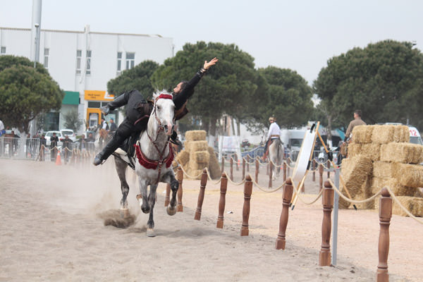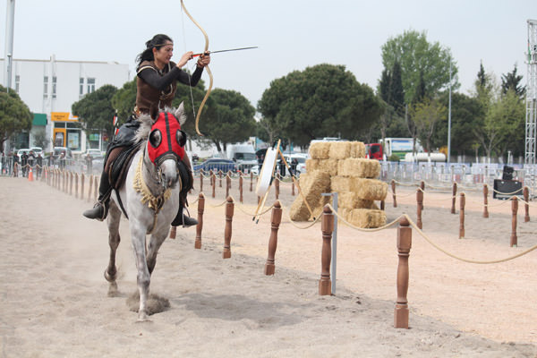Balıkesir'in Karesi Belediyesi tarafından düzenlenen "Uluslararası Altın Ok Atlı Okçuluk ve Savaş Sanatları Festivali"nde atlı akrobasi ve kırbaç gösterileri sunuldu. Yeni Sanayi Sitesi 3'üncü Kapı önünde gerçekleştirilen festivalde, at üstünde akrobasi hareketleri yapan okçular, vatandaşlar tarafından ilgiyle izlendi. Finlandiya, Polonya, İran, Malezya, Katar, Ukrayna ve Bulgaristan'dan atlı sporcuların da katıldığı festivalde Türkiye'yi, Kayseri, Ankara, Sivas, Kocaeli, Tokat, Erzurum, Konya, İstanbul, Balıkesir ve Nevşehir'den sporcular temsil ediyor. Etkinlikler yarın akrobasi gösterisiyle sona erecek.