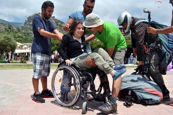 Engellileri uçurmanın kendi inisiyatiflerinde olduğunu vurgulayan İbrahim Somyürek ise, "İnişte ve kalkışta arkadaşlarımızın yardımıyla engellilerimizi uçuruyoruz. Canan'a önce uçabileceğini söylemişler. Sonra 'Uçamazsın' demişler. Çok üzülmüş. Annesinin ricası üzerine bu uçuş gerçekleşti. Benim daha önceden haberim yoktu. Yoksa ağlatmazdık onu" diye konuştu. Tüm engellileri Ölüdeniz'e davet eden Somyürek, yamaç paraşütü yapmak isteyen engellileri uçurmaya hazır olduklarını sözlerine ekledi.