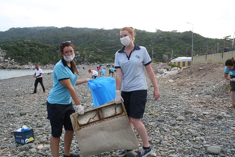 Muğla'nın Marmaris ilçesinde turist rehberleri tarafından bu yıl ikincisi düzenlenen sosyal sorumluluk projesi kapsamında plaj çevresinden 100 torba çöp toplandı. Tantur Turizm bünyesinde çalışan Hollandalı, Alman, İngiliz ve Türk 60 rehberin katılımıyla gerçekleştirilen sosyal sorumluluk projesi kapsamında, Yalancı Boğaz'da temizlik çalışması yapıldı. Bir saat süren etkinlikte; plajdan 100 torba çöp toplandı. Firmaları tarafından başlatılan etkinliğin dünya çapında yapıldığını söyleyen Tantur Turizm Marmaris Bürosu Operasyon Sorumlusu Eda Nazan Ansen, "Biz Marmaris olarak ülkemizde bu sosyal sorumluluk projesinin başını çekiyoruz. Bu yıl ikincisini düzenlediğimiz etkinliğe yaklaşık 60 yerli ve yabancı rehberimiz katılım gösteriyor. Bugün bu işi birazda oyuna dönüştürmek istedik. 10'arlı altı gruba ayrıldık. Plajdan en fazla çöpü toplayana çeşitli hediyeler de vereceğiz" dedi. Ansen; plajdan toplanan çöplerin plastik, cam ve kağıt olarak da ayrıştırıldığını da sözlerine ekledi. Rehberler, etkinliğin çok faydalı olduğunu belirterek hem ilçe genelinde ve çevresinde temizlik yaptıklarını hem de bu sayede çevreyi de tanıma fırsatı bulduklarını söyledi.