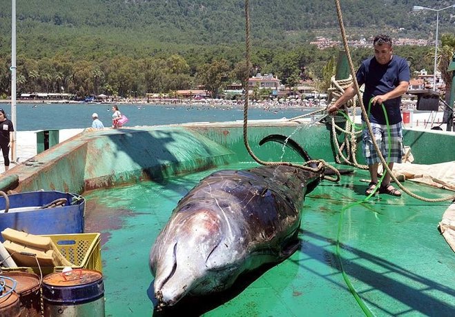 Alınan bilgiye göre, Gökova Körfezi İngiliz Limanı açıklarında su yüzeyinde büyük bir balığın hareketsiz yattığını gören balıkçılar, durumu yetkililere bildirdi.