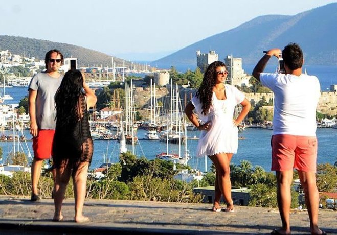 İlçeye tatile gelenler başta olmak üzere fotoğraf tutkunları ve kent sakinleri, tablo gibi manzarayı ölümsüzleştirmek için bölgeye akın ediyor. Özçekim yapanlar, mutlu günleri öncesi düğün fotoğrafı çektirenler ya da sevdikleriyle hatıra fotoğrafı çektirmek isteyenler, Emin Anter Bulvarı'nda kalabalıklar oluşturuyor. Eşi ve iki kızıyla Sakarya'dan kente tatile gelen inşaat teknisyeni Eşref Semih Olcar, "Bayram tatili için geldiğimiz Bodrum'dan dönmeyi hiç istemedik. Hava güzel, deniz çok güzel. Dönüş yoluna çıktıktan hemen sonra gördüğümüz tablo gibi manzarada bizleri hayran bıraktı. İlçeden ayrılmadan önce bol bol hatıra fotoğrafı çektirdik. Gördüğümüz kadarıyla burada bu manzarayı gören kolay kolay ayrılamıyor" dedi.