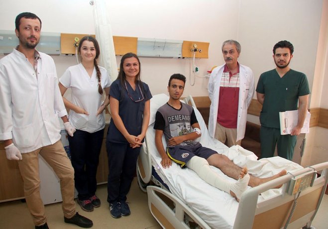 Hem orijinal kemiğini kaynattık hem de protez uyguladık. Hastayı operasyondan 2 gün sonra yürütmeyi başardık. Şimdi düzgün bir şekilde yürüyor" diye konuştu.
