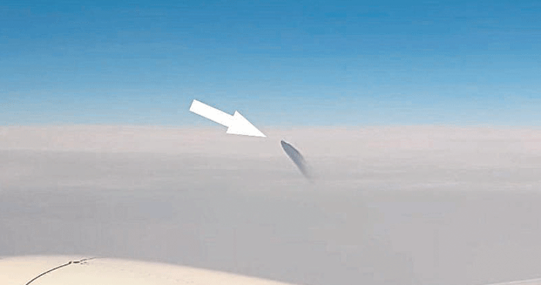 Siyah renkli, bir füzeyi andıran cismin havada hareket ettiği anlar İngiliz yolcu tarafından kaydedildi.