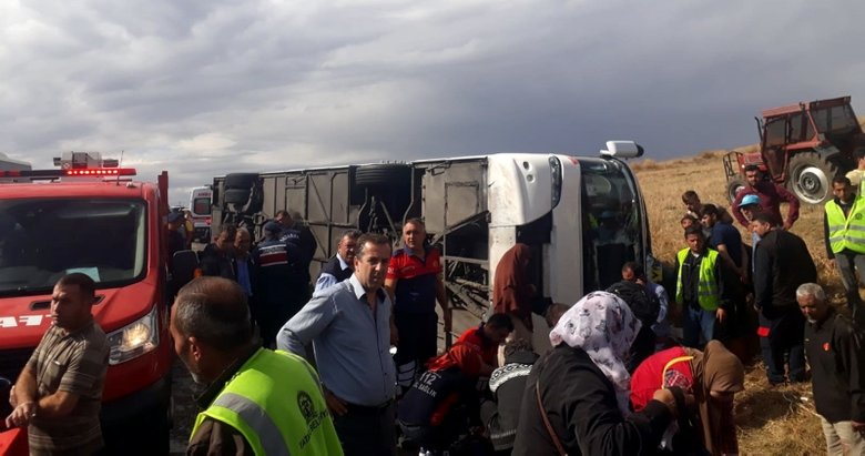 Afyonkarahisar'da turistleri taşıyan otobüs devrildi! Ölü ve yaralılar var Yaralılar çevrede bulunun hastanelere sevk edilirken, kolluk kuvvetlerinin olayla ilgili incelemesi ve soruşturması sürüyor.