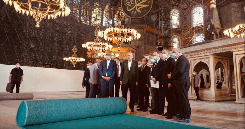 Son dakika: Başkan Recep Tayyip Erdoğan Ayasofya Camii'nde incelemelerde bulundu